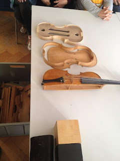 Welche unterschiedlichen Hölzer für die verschiednenen Teile einer Violine benötigt werden und wo erstere zu finden sind, wie die verschiednenen Teile heisse und vieles mehr haben wir im Theorieteil der Führung erfahren. Im Anschluss durften wir den Geigenbauern im Atelier über die Schulter schauen.